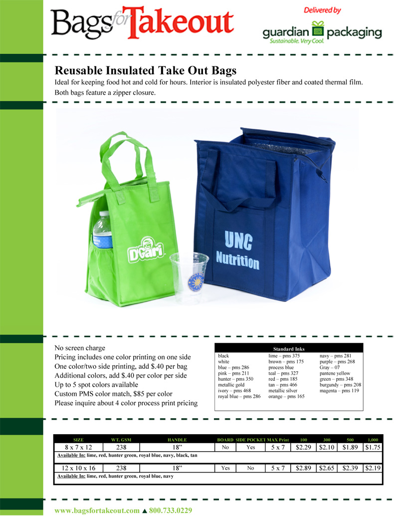 Reusable - Insulated Take Out Bags